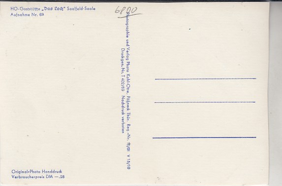 Saalfeld Saale Thüringen Gaststätte Das Loch 1961