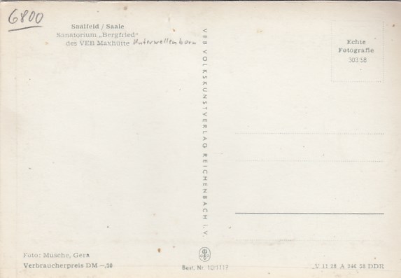 Saalfeld Saale Thüringen Sanatorium Teehaus 1965