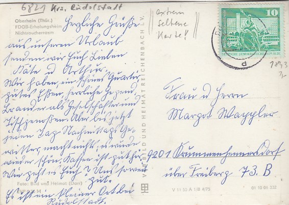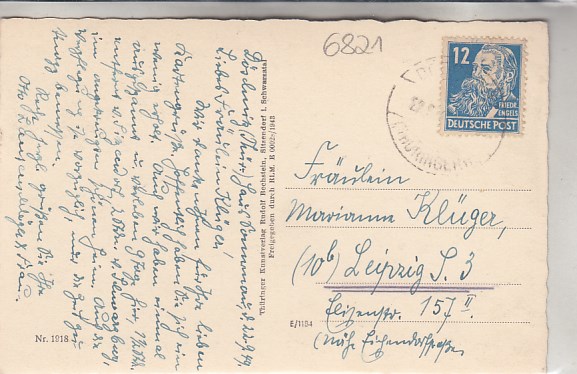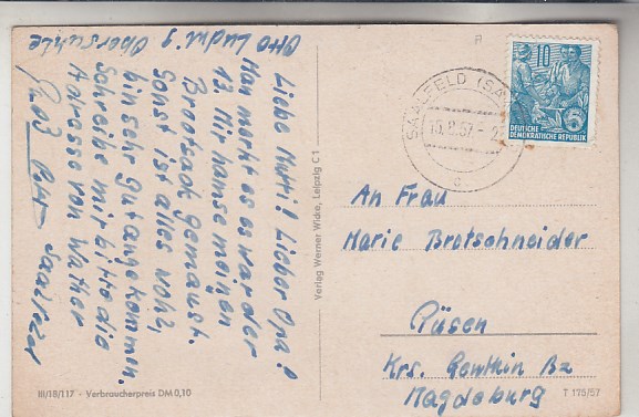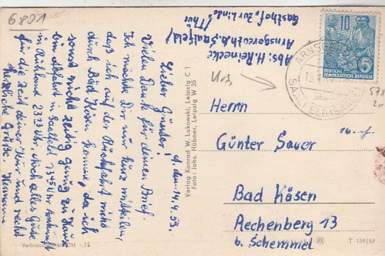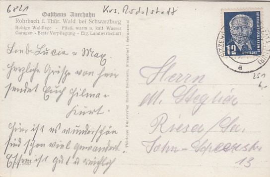 Rohrbach in Thüringen Landpoststempel Sitzendorf 1957