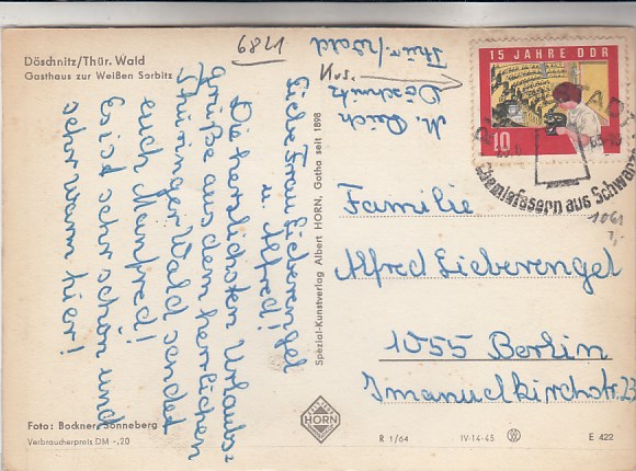 Döschnitz bei Sitzendorf in Thüringen 1964