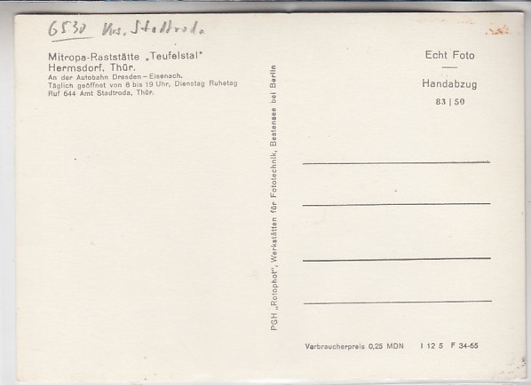 Hermsdorf in Thüringen Autobahn Mitropa Raststätte 1965