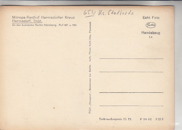 Hermsdorf in Thüringen Autobahn Mitropa Raststätte 1962