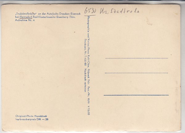 Hermsdorf-Bad Klosterlausnitz-Eisenberg in Thüringen Teufelstalbrücke Autobahn 1956