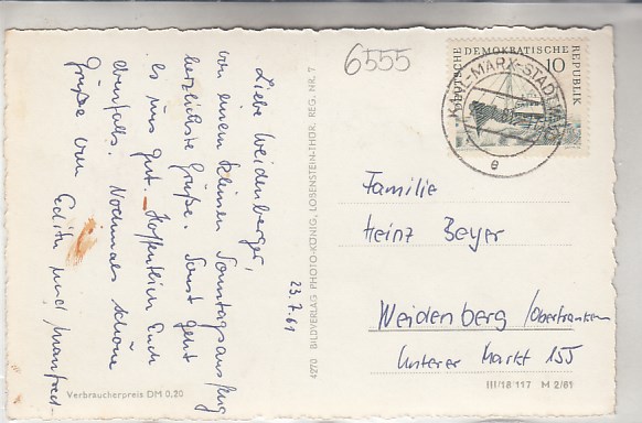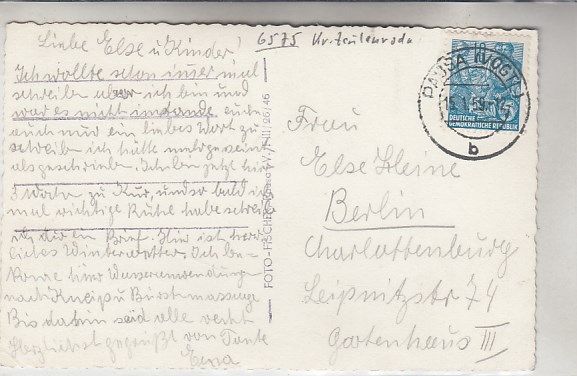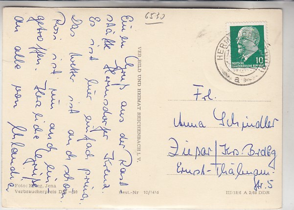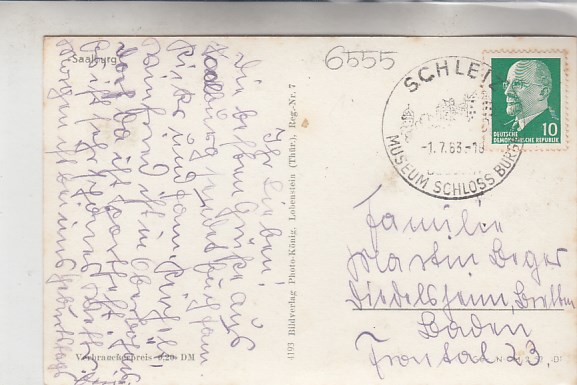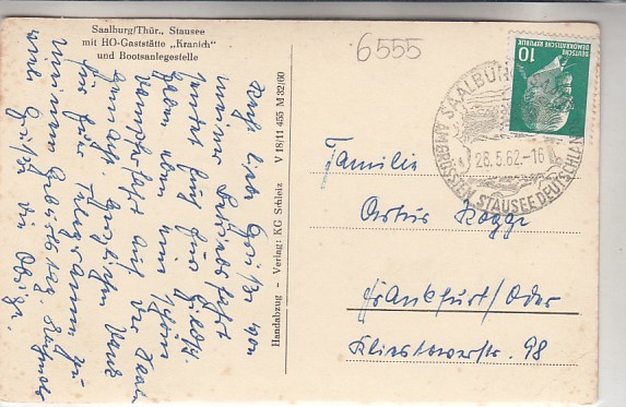 Saalburg Saale Thüringen Stausee Bleilochsperre OT Beu-Saaldorf Landpoststempel 1959