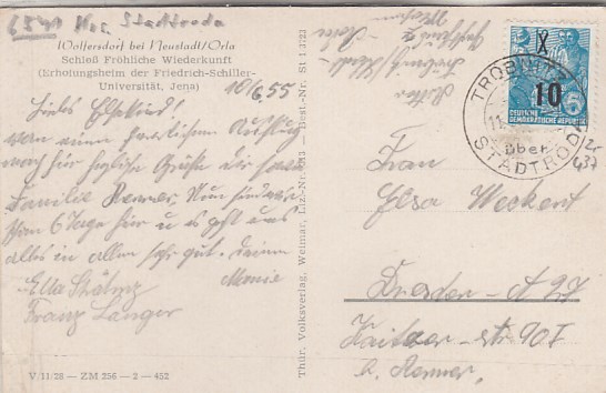 Gräfenwarth Thüringen mit Landpoststempel über Schleiz 1959