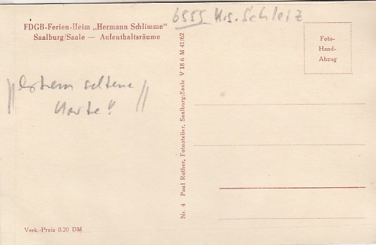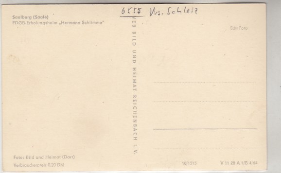 Saalburg Saale Thüringen FDGB-Heim Hermann Schlimme 1964