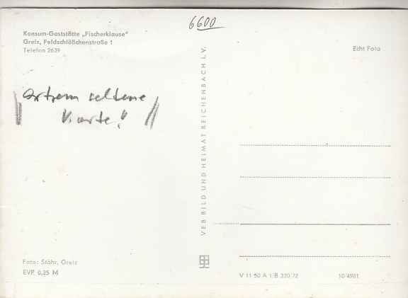 Greiz in Thüringen Gaststätte Fischer Klause Aubachtal 1972