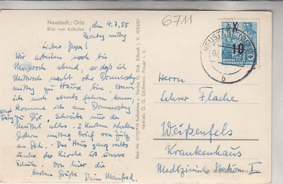 Neustadt an der Orla in Thüringen vom Kalkofen 1954
