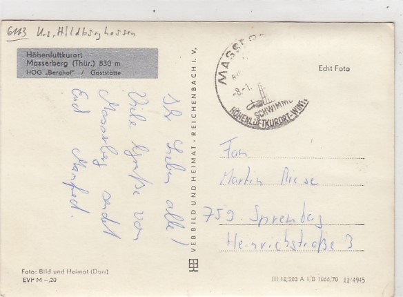 Oberhof in Thüringen VDK Erholungsheim 1961