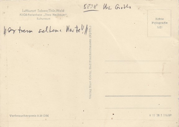 Tabarz in Thüringen FDGB-Heim Theo Neubauer 1958