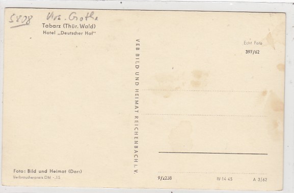 Tabarz in Thüringen Hotel Deutscher Hof 1962