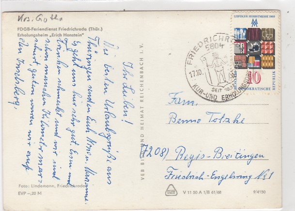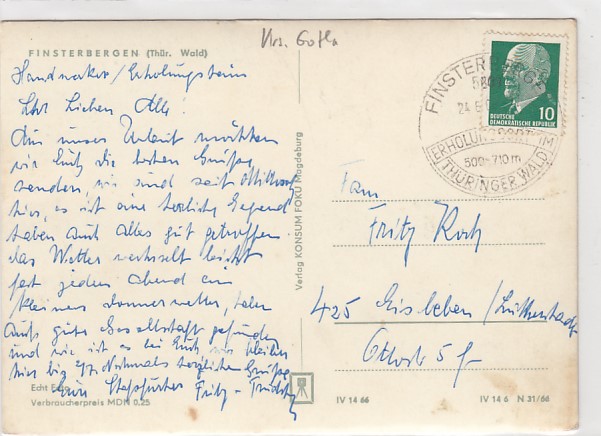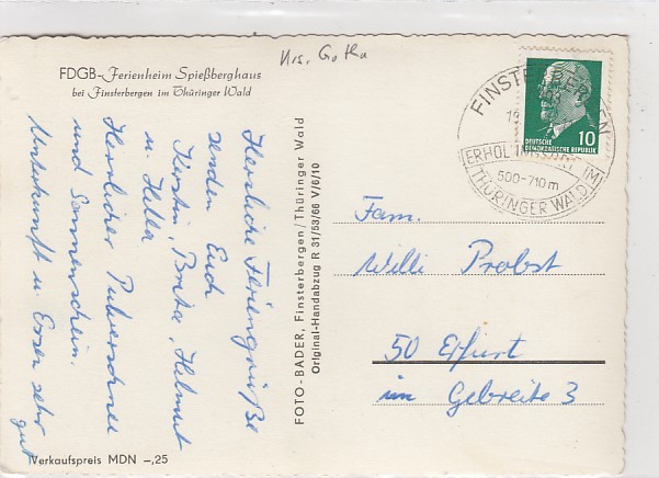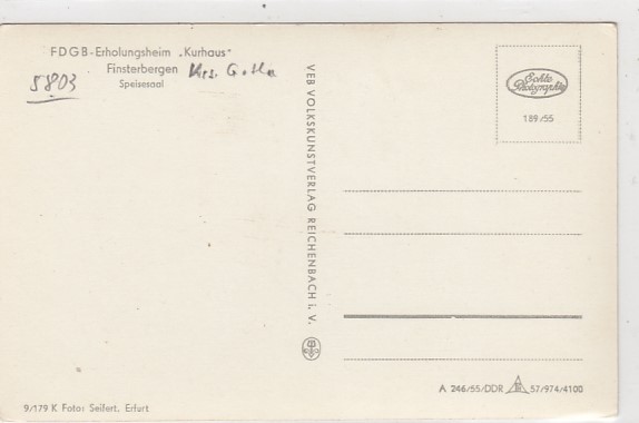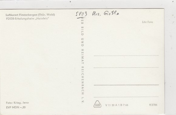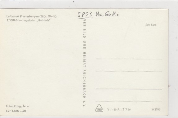 Finsterbergen in Thüringen FDGB-Heim Hainfels 1966