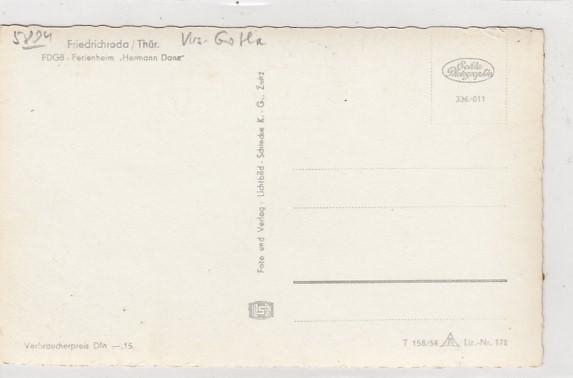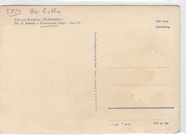Friedrichroda in Thüringen Cafe Waldschlößchen 1959