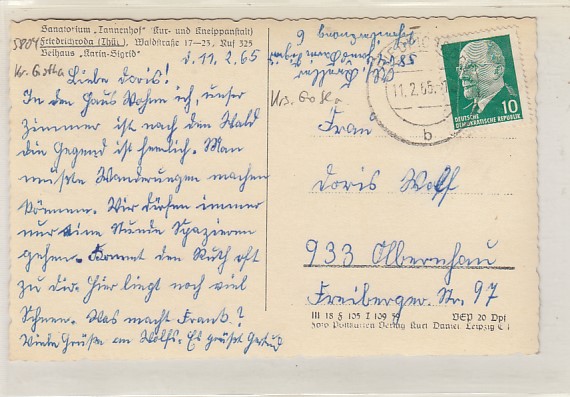 Friedrichroda in Thüringen Sanatorium Tannenhof 1956