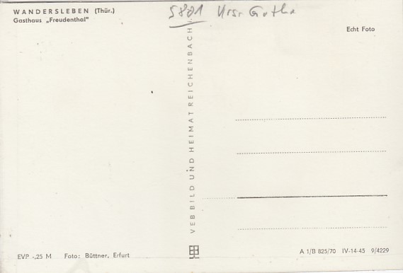 Wandersleben in Thüringen Gasthaus Freudenthal 1970