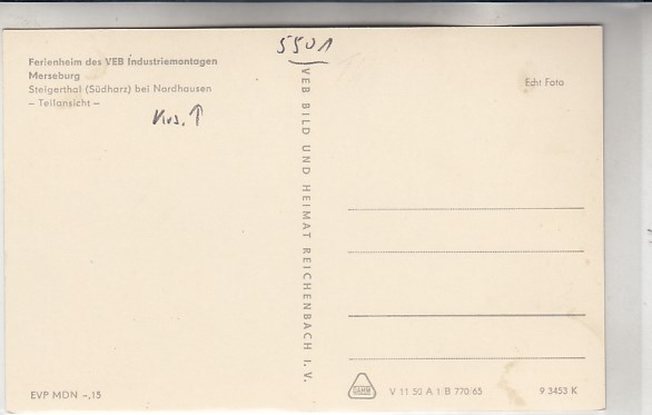 Steigerthal Südharz bei Nordhausen Ferienheim VEB Merseburg 1965