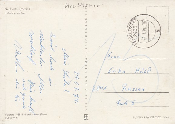Neukloster in Mecklenburg Fischerhaus am See 1972