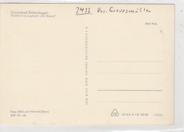 Ostseebad Boltenhagen Ferienheim Zentrag 1976