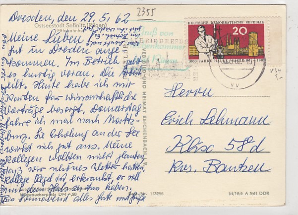 Sassnitz-Saßnitz auf Rügen Fährschiff Bahnhof 1961