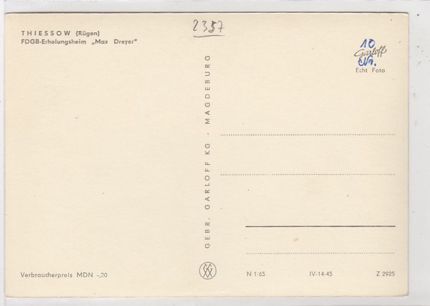 Ostseebad Thießow-Thiessow auf Rügen FDGB-Heim Max Dreyer 1965