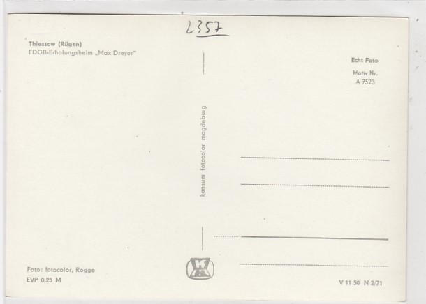 Ostseebad Thießow-Thiessow auf Rügen FDGB-Heim Max Dreyer 1971