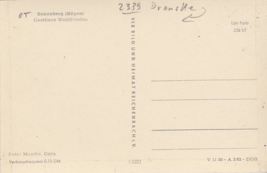 Dranske OT Bakenberg auf Rügen Gasthaus Waldfrieden 1962
