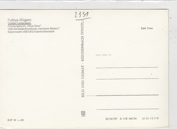Baabe auf Rügen Ferienheim Hennigsdorf 1976