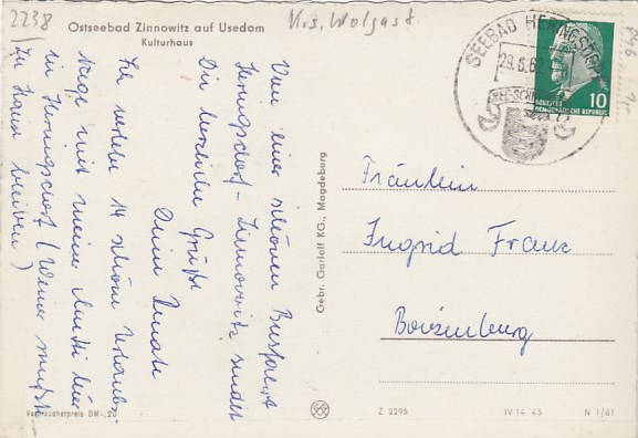 Ostseebad Zinnowitz auf Usedom Kulturhaus 1962