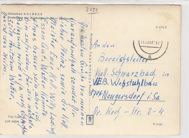 Ostseebad Ahlbeck Kinderheim Rheinsbahn Greifswald 1967