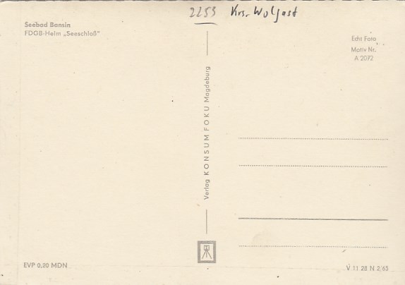Ostseebad Bansin FDGB-Heim Seeschloß 1965