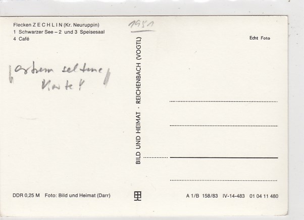 Flecken Zechlin Ostprignitz Gaststätte Schwarzer See 1969