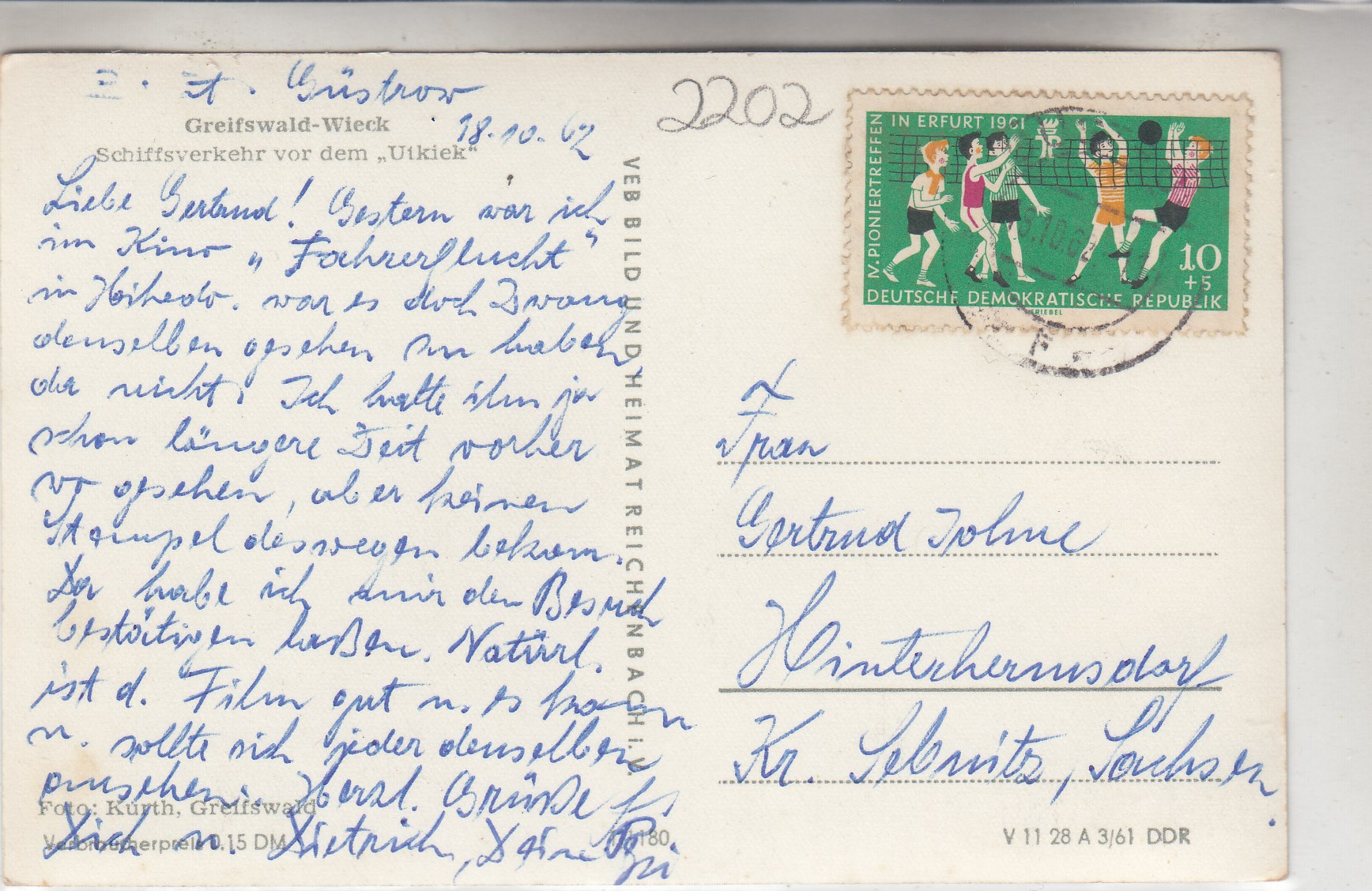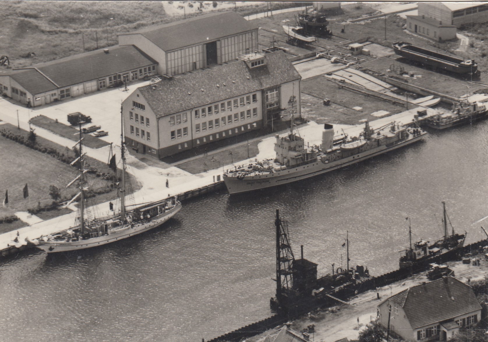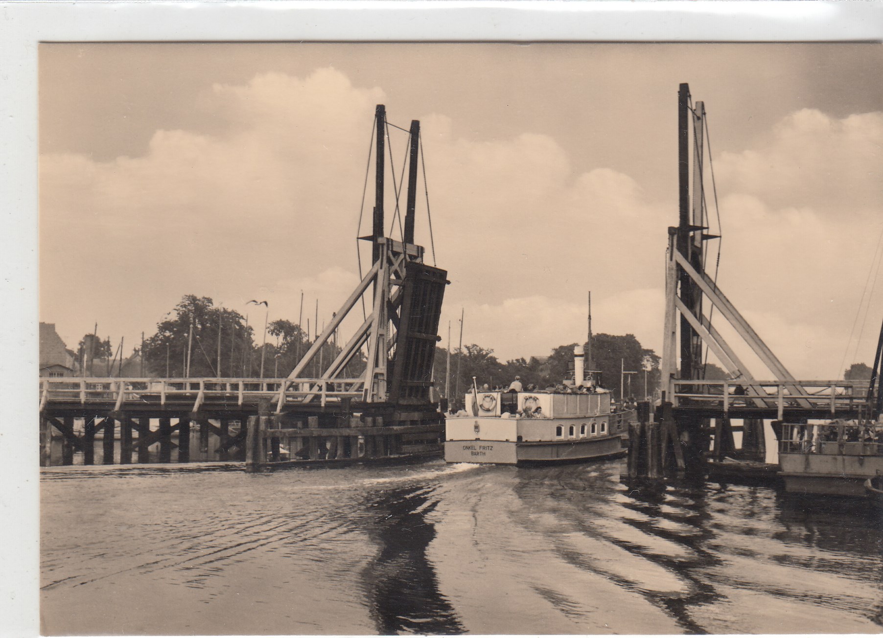 Greifswald OT Wieck Motorschiff und Segelboote 1961
