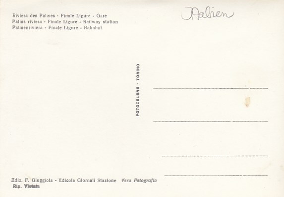 Rivera des Palmes Palms riviera Italien Italy Italian old postcard alte Bilder Bahnhof