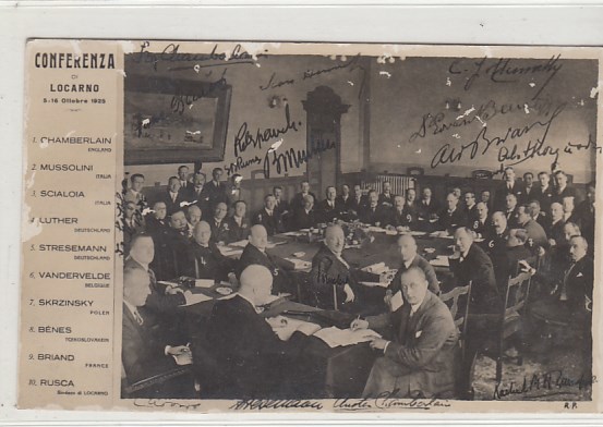 Verträge von Locarno Schweiz Foto Karte Stresemann Mussolini Chamberlain Luther 1925