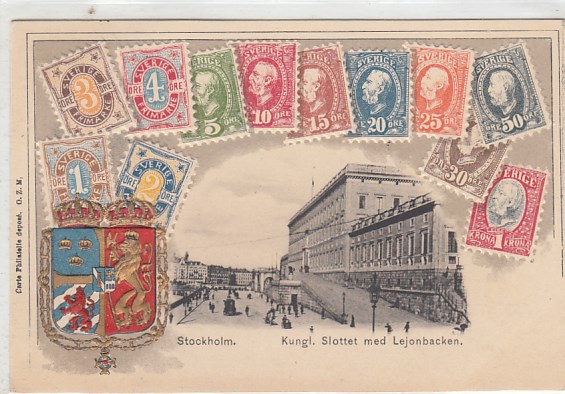Stockholm Schweden Sverige Briefmarken Wappen Prägekarte ca 1900