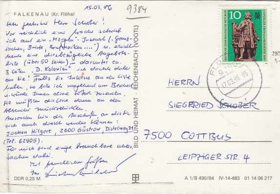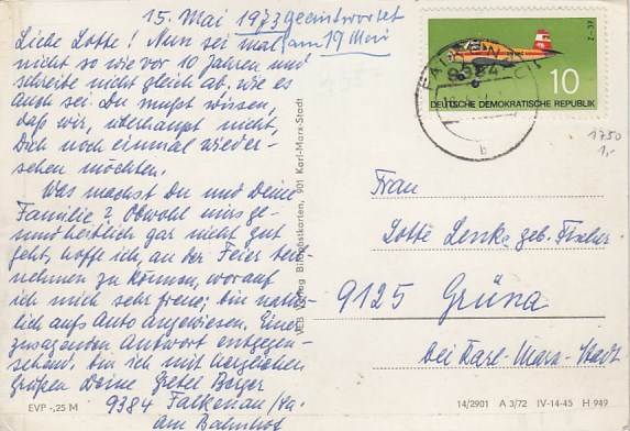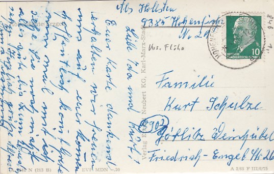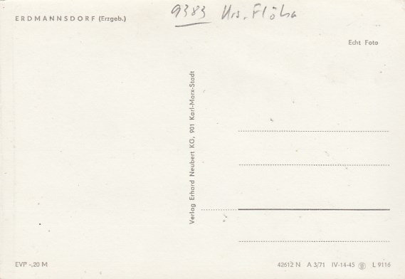 Flöha im Erzgebirge in Sachsen mit Bahnhof und Postamt 1965