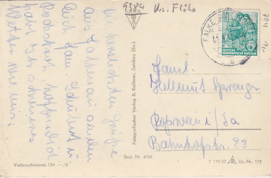 Gemeinde Leubsdorf OT Hohenfichte im Erzgebirge 1956