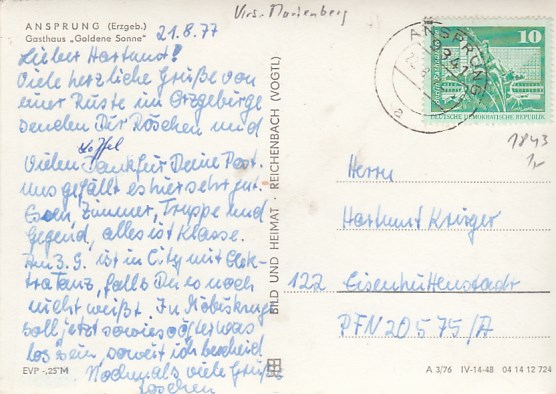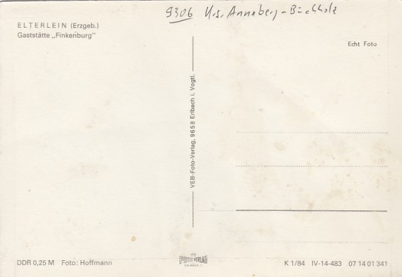 Elterlein im Erzgebirge Gasthaus Finkenburg 1968