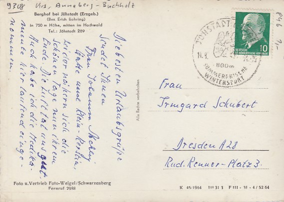 Oberwiesenthal im Erzgebirge Ferienheim I.G.Wismut Sachsenbaude 1965