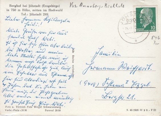 Pockau-Lengefeld im Erzgebirge OT Wünschendorf 1961