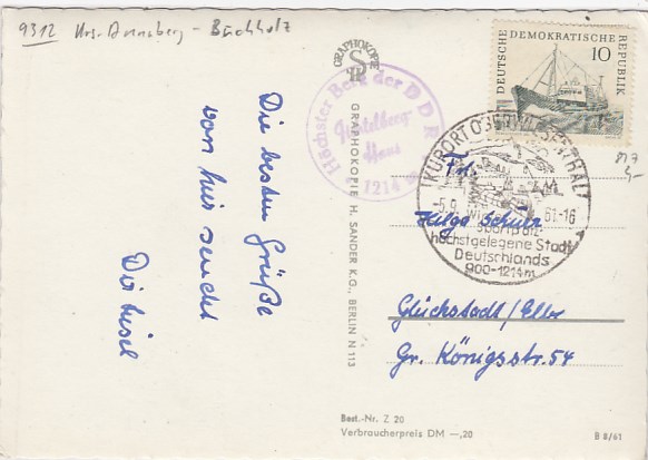 Oberwiesenthal im Erzgebirge Fichtelberghaus 1962