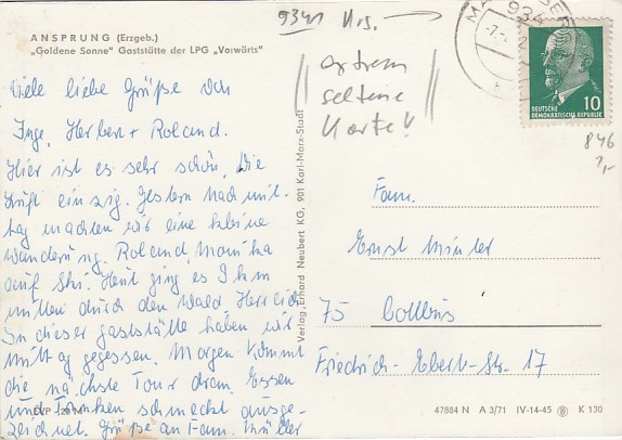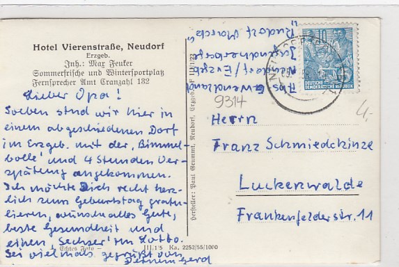 Gemeinde Sehmatal OT Neudorf Erzgebirge Hotel Vierenstraße 1955