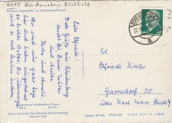 Scheibenberg im Erzgebirge Orgelpfeifen 1963
