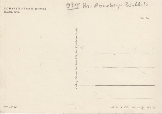 Scheibenberg im Erzgebirge Orgelpfeifen 1969