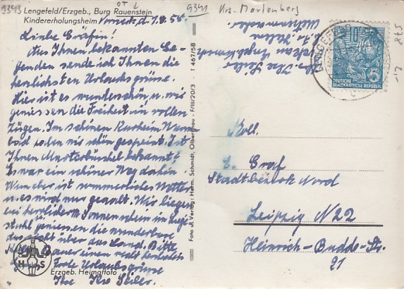 Gemeinde Sehmatal OT Neudorf Erzgebirge Jugendherberge 1957