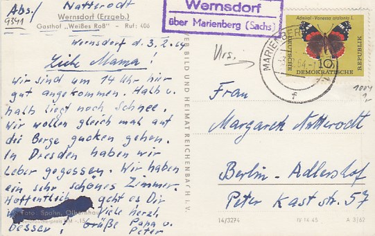 Pockau-Lengefeld im Erzgebirge OT Wernsdorf Gasthof Weißes Roß 1962