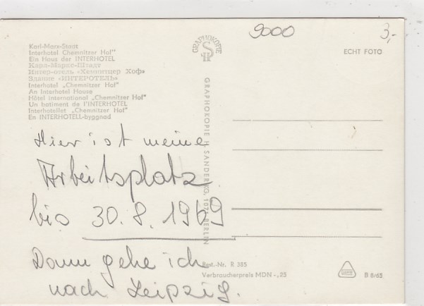 Chemnitz Hotel Chemnitzer Hof 1969