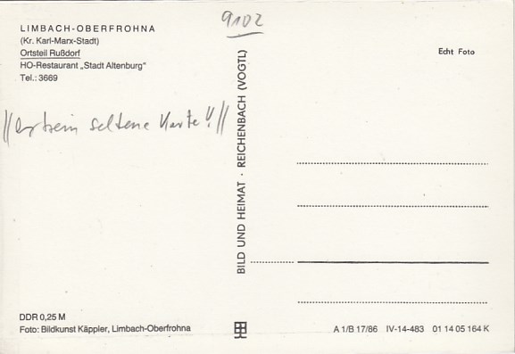 Limbach-Oberfrohna OT Rußdorf Restaurant Stadt Altenburg ca 1980