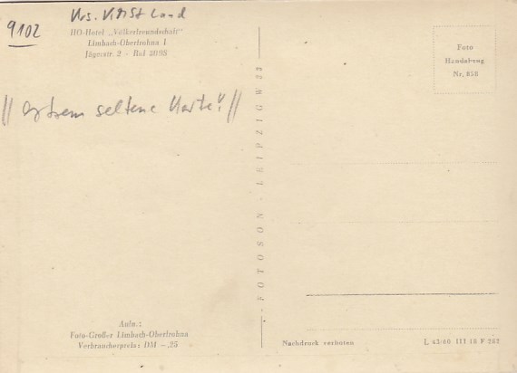 Limbach-Oberfrohna Hotel Völkerfreundschaft 1960
