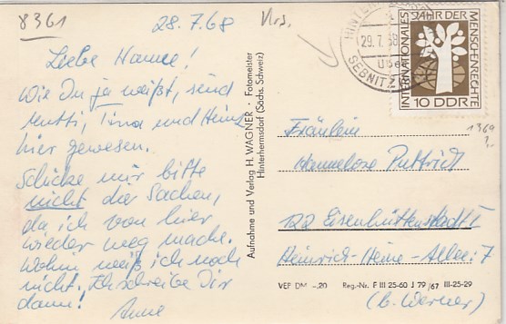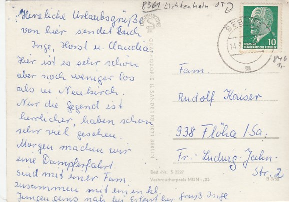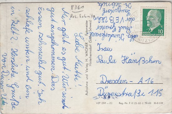 Sebnitz in Sachsen Finkenberg 1964